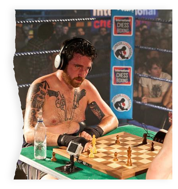 我還真的看過私人場的Chess Boxing,一整個無比莫名其妙的,但是這個運動還滿有名氣的,A chess boxing fight consists of 11 rounds (six chess, five boxing), alternating between each sport and lasting three minutes. A competitor may win by knockout, technical knockout, checkmate, or their opponent becoming disqualified, resigning or exceeding the time limit in the chess rounds. Typically, as the fight goes on, the standard of chess (understandably) drops.