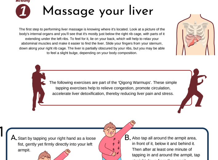 裡面有一些可愛的小活動,我家小朋友興奮看到這個 Massage your liver,因為她們2014回台灣的時候跟外婆學過一些太極拳,裡面很多類似的動作。