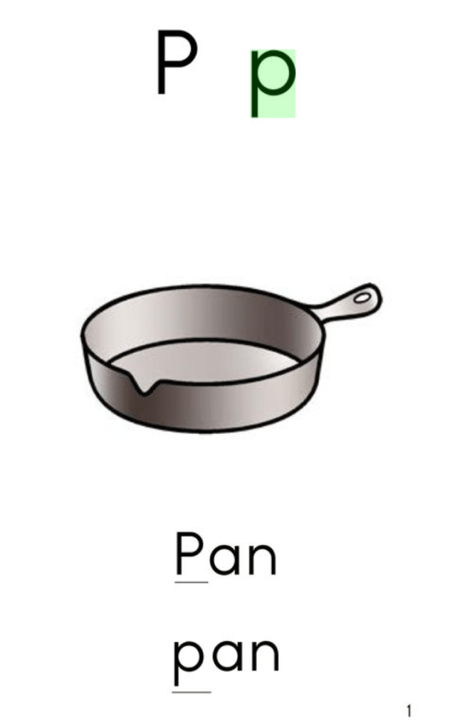 在Raz-Plus裡面有一個Sound/Symbol Books,畫面很簡單,弟弟跟著唸完後一頁後我就會按暫停,然後請他找書跟畫面上的圖有相關的”人事物”(我家有很多圖卡,有時候是用玩具。),比如說這一張上面是一個平底鍋,弟弟就會從圖卡中找出蔥油餅、找出一個大肚子的女人(他不知道那是懷孕他覺得是吃很飽),找出培根…..然後我會按下一張,以此類推,我們通常一個禮拜會做一次這種聯想練習。