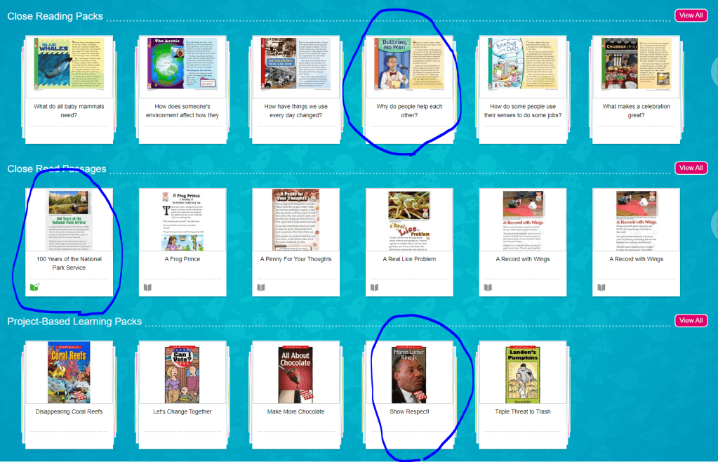 在Raz-Plus裡面有一個Pack and Passages,我們會去mix and match故事主角、問題、場景…等等。