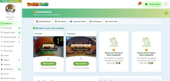 進去學生帳號之後,你會看到四個單字框,上面按照年級設定好的單字框。